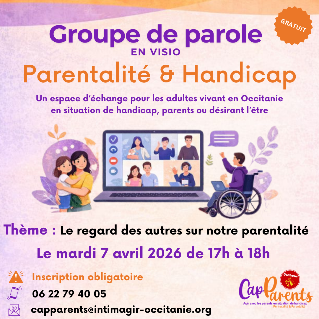 CapParents Occitanie lance son premier groupe de parole en visio, à destination des personnes en situation de handicap vivant en Occitanie, déjà parents, en devenir ou avec un projet de parentalité.