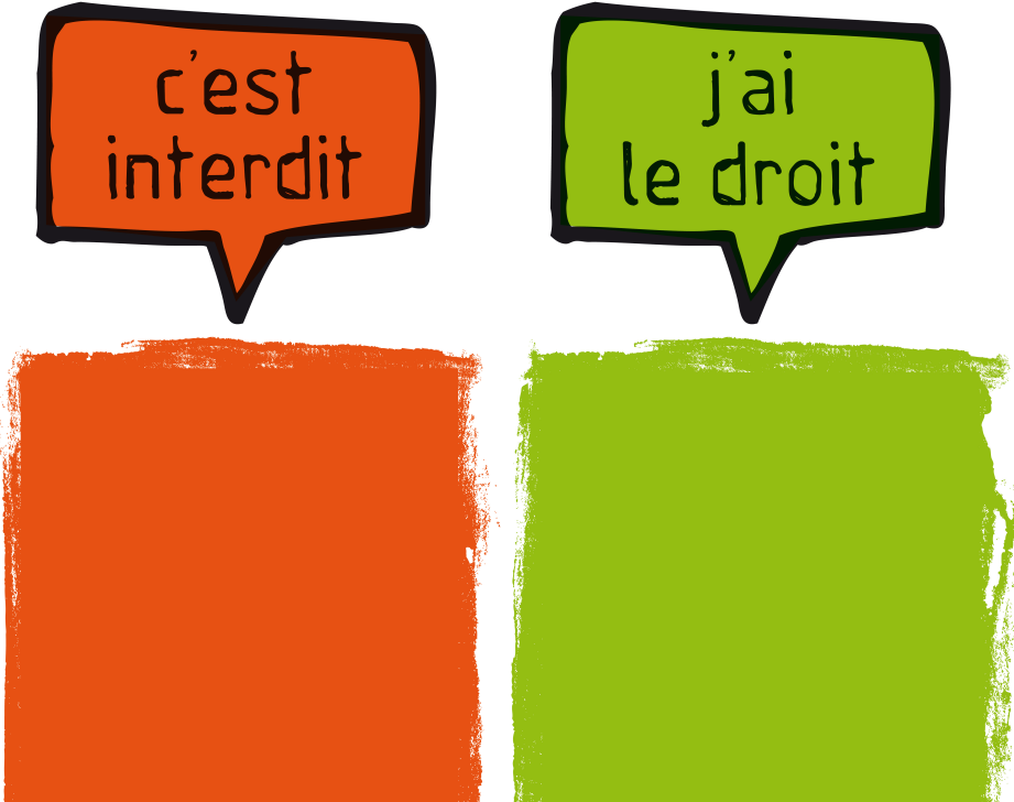 Il y a deux vignettes : « c’est interdit » et « j’ai le droit ».