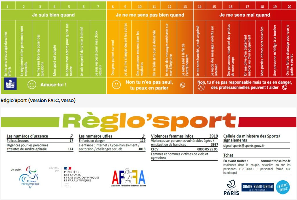 Le Règlo’Sport est un outil de prévention des violences dans le sport, développé par le Ministère des Sports et le Comité Paralympique et Sportif Français, en lien avec plusieurs associations dont Femmes Autistes Francophones.