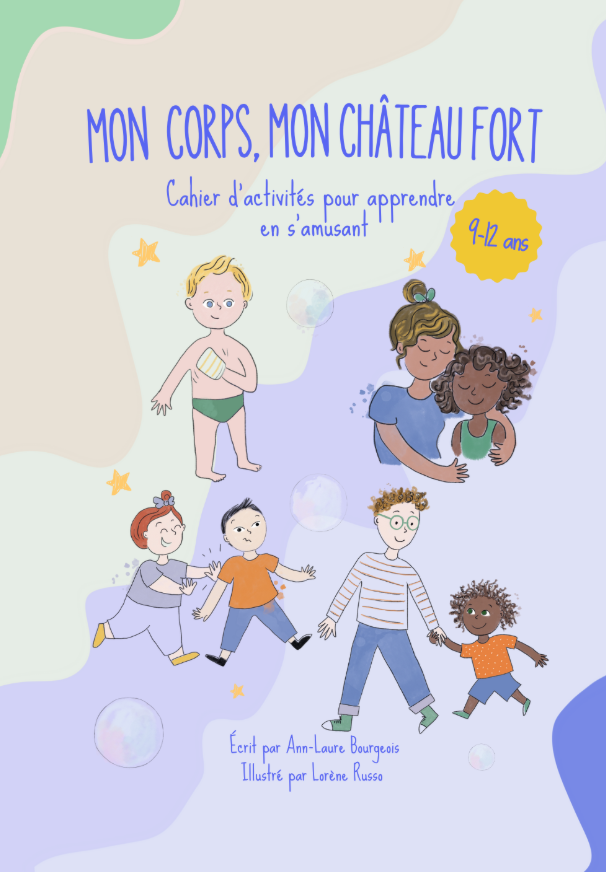 Le cahier d’activités Mon corps, mon château fort, proposé par Les Ateliers Badass, est un outil pédagogique destiné aux enfants de 9 à 12 ans pour aborder le consentement et l’intimité.