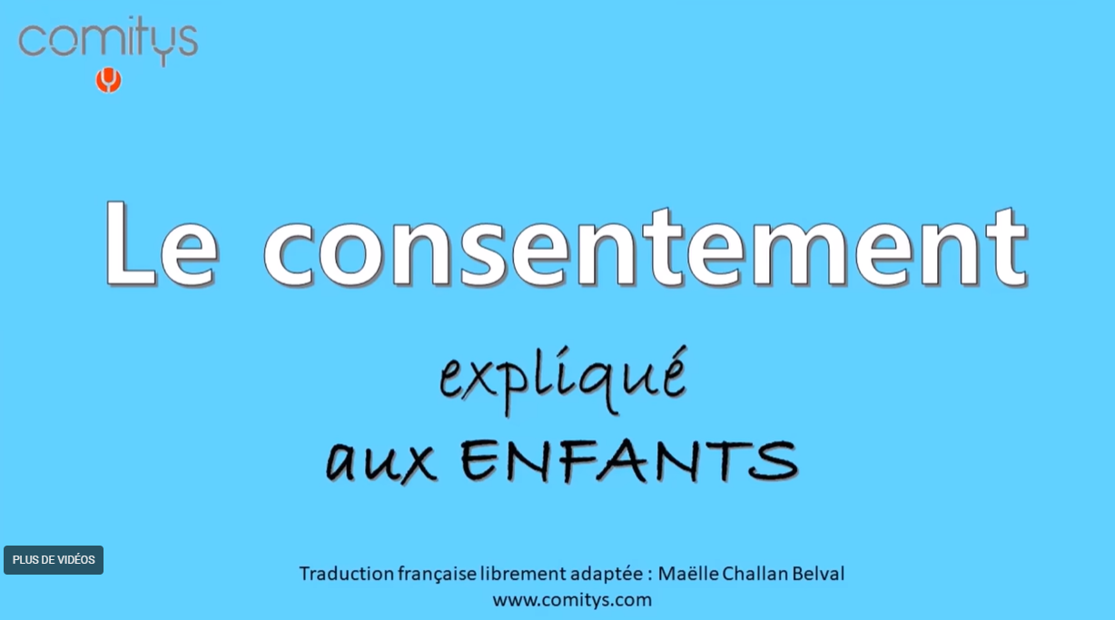 La ressource « Le consentement expliqué aux enfants » proposée par Comitys est une courte vidéo pédagogique qui aborde le respect du corps avec un langage simple et accessible.
