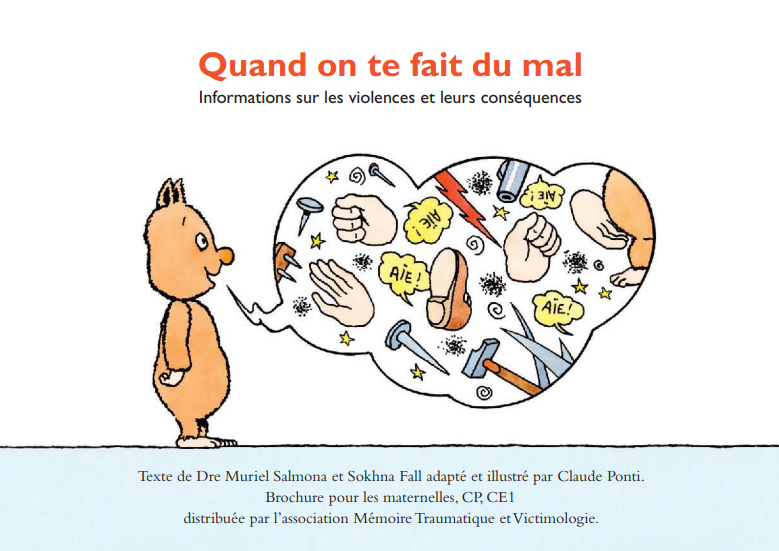 Le livret « Quand on te fait du mal », proposé par l’association Mémoire Traumatique et Victimologie et illustré par Claude Ponti, est un support de prévention destiné aux jeunes enfants (maternelle à CE1).