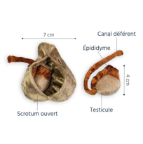 Les testicules sont amovibles pour montrer des détails comme l’épididyme et les canaux spermatiques.