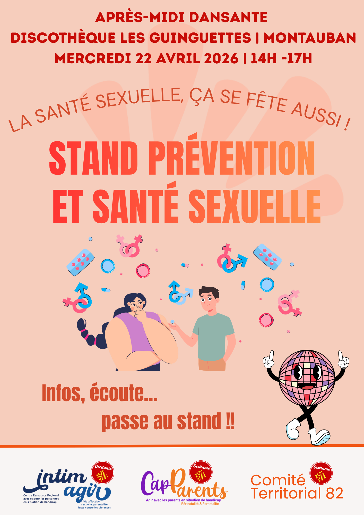 Vous pourrez profiter d’un stand prévention et santé sexuelle organisé par le comité territorial 82 d’Intimagir et CapParents Occitanie, n’hésitez pas à aller les rencontrer et échanger avec eux !
